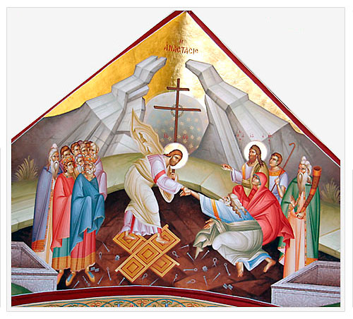схождение Христа душою во ад (после смерти на кресте и до Воскресения) с целью освобождения заключенных там ветхозаветных праведников, которые при жизни и по смерти с верою ожидали пришествия Христа Спасителя. |